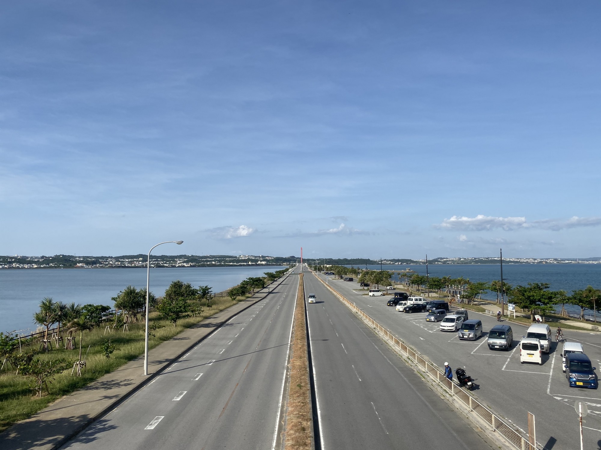 路線以沖繩本島中南部為主,行程起伏較北部第一天路線和緩,先往南繞島前往那霸,感受海景與繁華城市的反差感,經過沖繩街道、渡假地區的海岸線,非常富有變化性的行程。