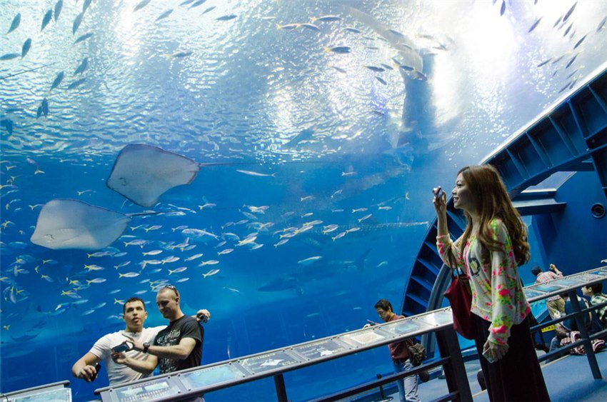 【沖繩美麗海水族館】座落在本部半島的沿海地帶,為沖繩海洋博公園所屬的館區,館內設有亞洲地區規模數一數二的巨大水族觀賞槽,並且成功復育鯨鯊、飼育珊瑚等海洋生物,兼具研究與觀賞職能,是園區最受歡迎的觀光景點,來到這裡可以享受漫步在海底隧道的美妙感覺,獲得前所未有的海洋探索體驗。